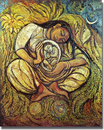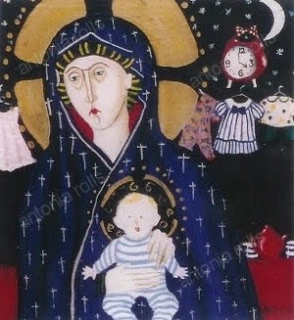 This type of foreshadowing and emphasis is also evident in Antonia Rolls “4am Madonna” which shows Mary’s cloak adorned with crosses.