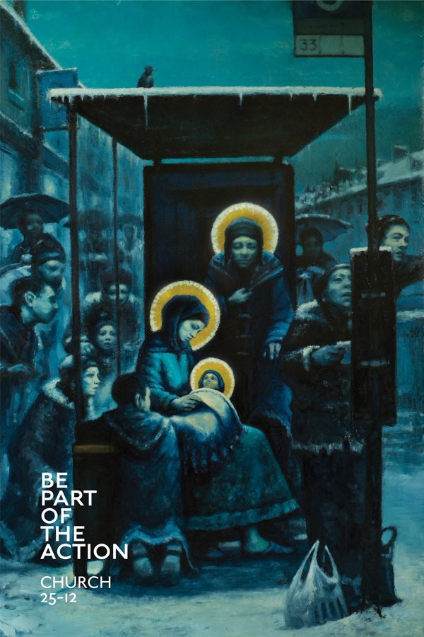 Each of the pieces of art tell us about the events of the nativity and also about the faith and context of the artist. Sometimes this is challenging. Consider Kelly Latimore’s “La Sagrada Familia” which depicts the Flight into Egypt of the Holy Family as modern day refugees.