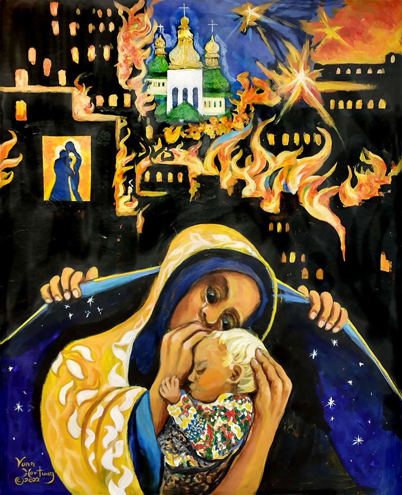 Jenna Conlin USAAnnunciation. (Artist: Alphonso Arul Doss)IndiaThe Shepherds Visit by Sister ClaireMadonna. (Artist: Sister Clare)Rocking the baby. (Artist: Sister Genevieve)IndiaBrandon Gonzales, USAJulie Yuen Yim, Hong KongJulie Yuen YimStar by Wendy Keller, USABarcelonaFresh Expressions, UKFresh Expressions, UKFresh Expressions, UKA. Vonn Hartung in Old San Juan, Puerto Rico (Metropolitan Cathedral Basilica of Saint John the Baptist)Puero Rico The Art of A. Vonn Hartung Ukrainian Mother and Child – The Art of A. Vonn HartungKelly Latimore, USAUkraine during WW2 and raised in Upstate New York, Irenaeus YurchukSimone Mcleod, artist, and courtesy of Canadian Art Prints and Winn Devon Art Group, Inc.CanadaGreece Nikos Giannakakis, NativityAustralia ‘The Gift’ by Rev. Robyn DavisPalestinian artist: Rawan AnaniThis Egyptian Nativity set includes the Holy Family, three Wise Men, two angels, a camel, a donkey, and a sheep. Each of the angels has a halo; one plays a mandolin, while the other shakes a tambourine. The figures were created by turning each piece of wood on a lathe. The artist, Mr. Elhamy, is a Copt, that is, a native Egyptian Christian.SPain “NATIVITY OF JESUS” SMALL CHRISTMAS PAINTING (2022) Painting by Yuliia ChaikaDinah Roe Kendall, The Shepherds Went to See the Baby, 1998. ENglandChristina Orthwein lives with her family in Bryn Athyn, Pennsylvania, where she works in her home studio and teaches ceramics and photography at Bryn Athyn CollegeBAnksyThe unique folk tradition of the szopka dates to the late 18th and early 19th centuries. In 2013 this szopka by Zbigniew Gillert was the first-place winner in a competition in the category of medium-sized Nativity scenes (szopki). Every December since 1937 a national szopka competition has taken place in the main square of Krakow. The Nativity scene takes the form of an elaborate building facade in which the tiny figures of the Holy Family are surrounded with fanciful architectural features including columns, elaborate molding, and towers topped with onion-shaped domes—features often seen on Krakow’s historic buildings.This Arbol Nacimiento (Tree Nativity) was made by Mexican ceramic artist Cecilio Sanchez Fierro. God the Father looks down from the top, flanked by the sun and the moon. The Star of Bethlehem shines above a stable, a winged angel, the Holy Family, an ox, and a donkey. The Tree of Life Nativity is a Mexican artistic tradition. The Book of Genesis in the Hebrew Bible describes the Garden of Eden and its Tree of Life, the fruit of which leads to eternal life.The Nativity 1857–1858 Arthur Hughes (1832–1915)Le Van Dai (Vietnamese), Nativity, 1980s. Watercolor on paper.China Lu Lan, Nativity, 1994.THAILAND – Nativity. 2004 by Sawai Chinnawong, Acrylic on canvasPHILIPPINES – Madonna and Child by BalagtasJamaica – Albert ArtwellIran- artist unknownAustralia- Duwun LeeUGANDA – Christ in the Manger. Francis Musango. Oil painting.KENYA – The Nativity. 1959 Fresco. Elimo Njau (born Tanzania, active Kenya, 1932-) St. James’ Anglican Cathedral, KiharuPERU – Peruvian Nacimiento, Marcia CaroleUSA –José y Maria – A Modern Day Nativity by Everett PattersonHAITI – Madonna and Child by Ismael SaincilusOntario, Canada. They’re taken from The Huron Carol by Frances TyrrellGUATEMALA – Madonna and Child – by Fr. Guiliani