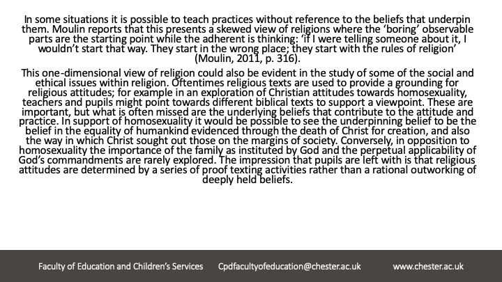 A reflection on Government policies on the subject of religious education: misunderstandings and the way forward.